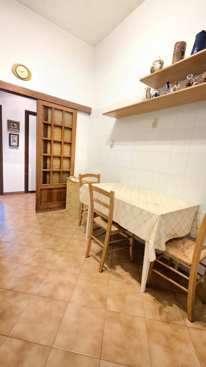 – Composizione:  doppi ingressi, soggiorno, cucina abitabile, tre camere, bagno finestrato, ampio ripostiglio, armadi a muro